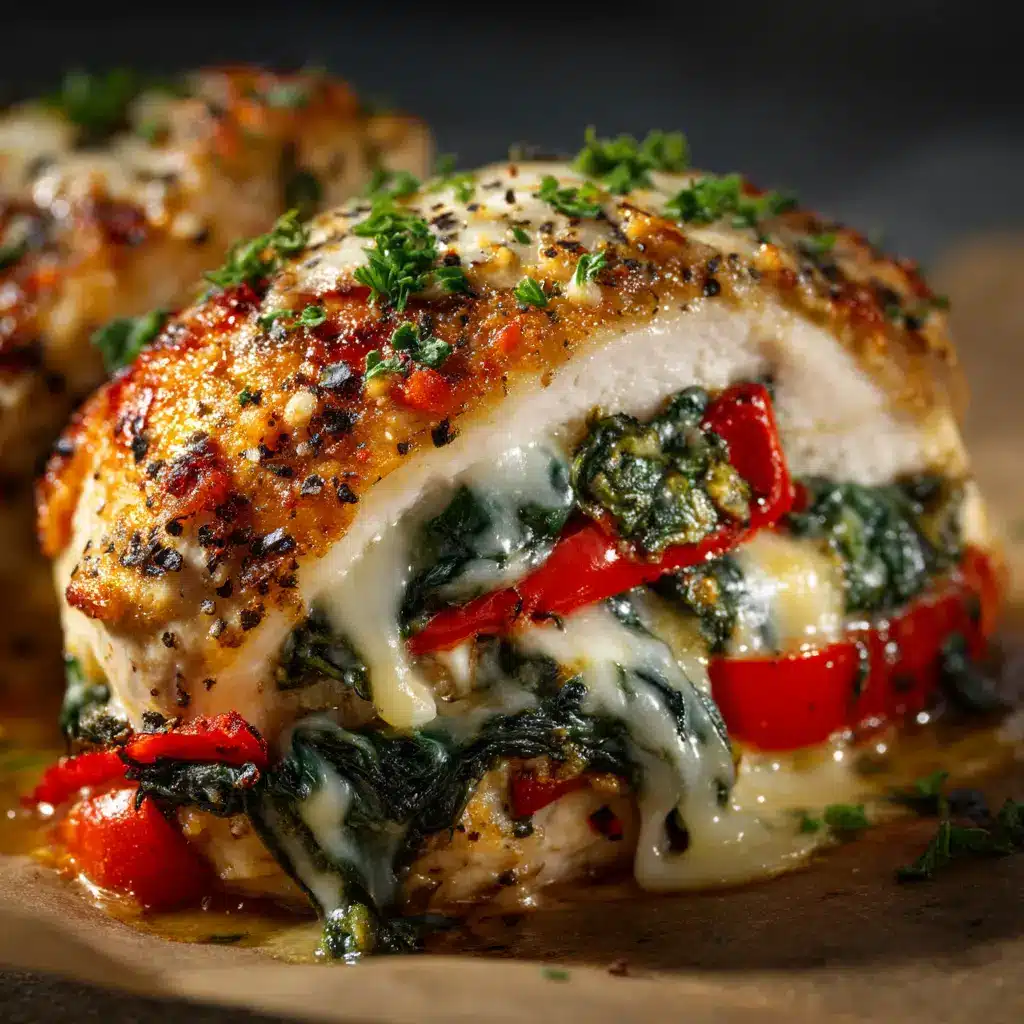 Forget dry, boring chicken dinners. This Roasted Red Pepper Stuffed Chicken is a game-changer for your weeknight meal rotation. Imagine tender, juicy chicken breasts filled with a rich and creamy blend of roasted red peppers, spinach, and three kinds of cheese, all baked to golden-brown perfection. It’s an elegant dish that’s surprisingly easy to make, delivering restaurant-quality flavor with minimal fuss. Whether you’re cooking for family or impressing guests, this recipe is your ticket to a memorable meal.