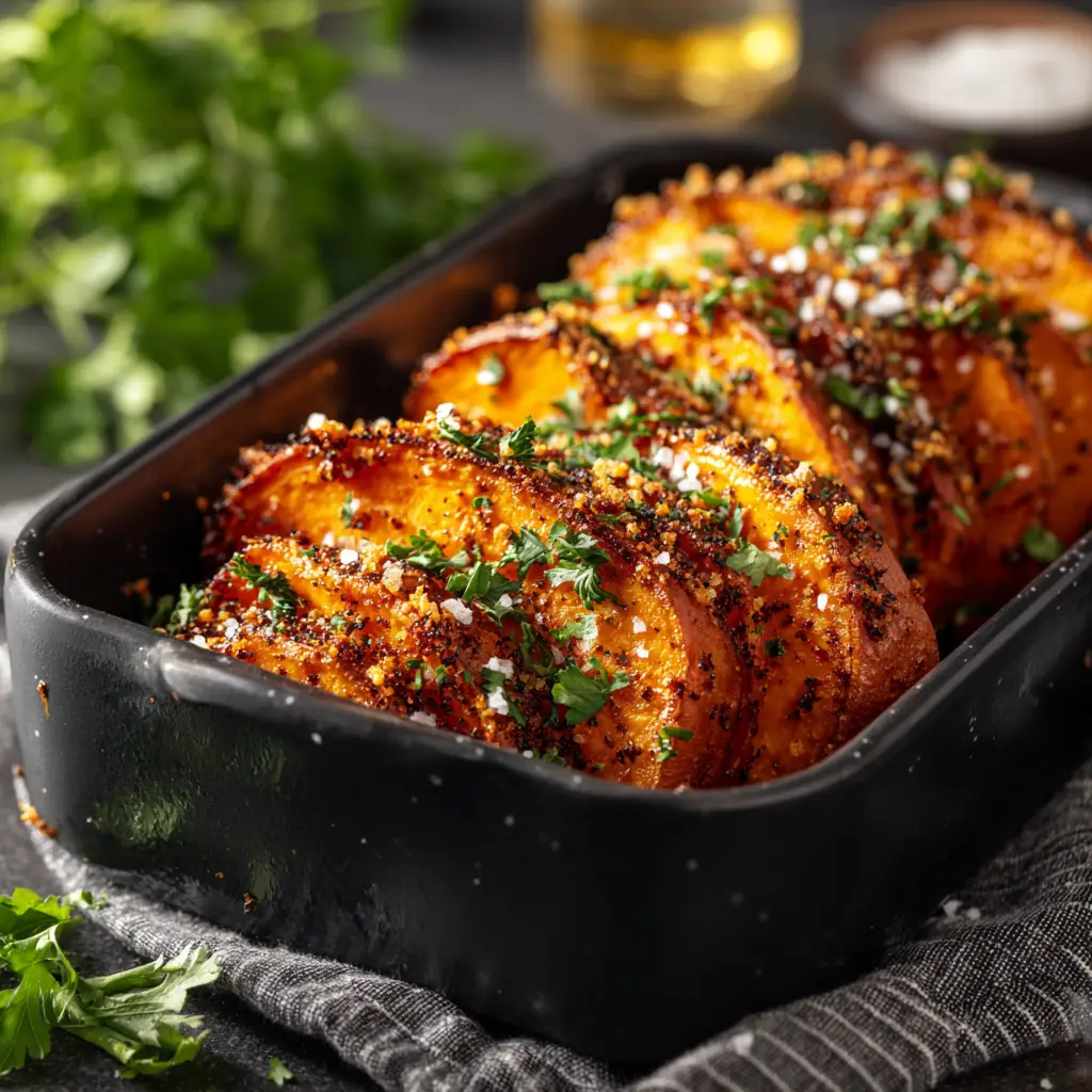 Savory Roasted Sweet Potatoes (Garlic & Herb)