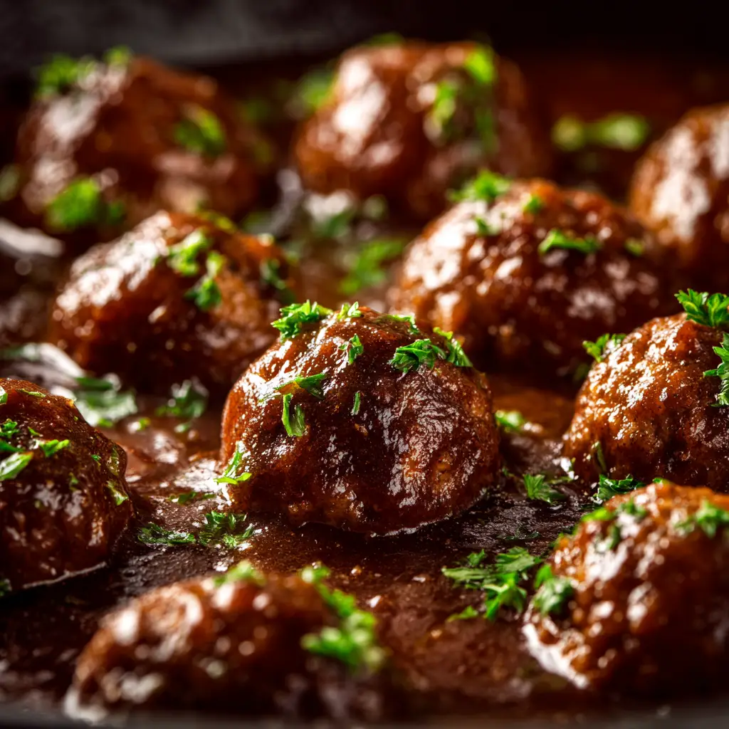 Pour the prepared gravy over the meatballs in the slow cooker. Stir gently to coat. Cover and cook on LOW for 6-8 hours or on HIGH for 3-4 hours. The meatballs will be incredibly tender and the gravy rich and flavorful.
